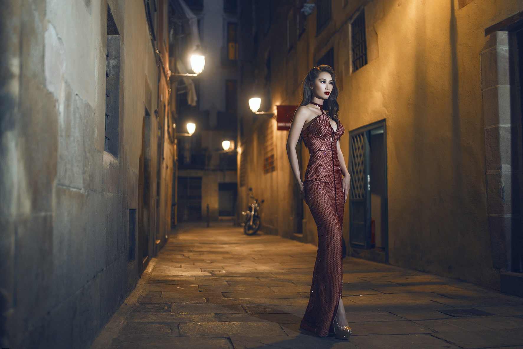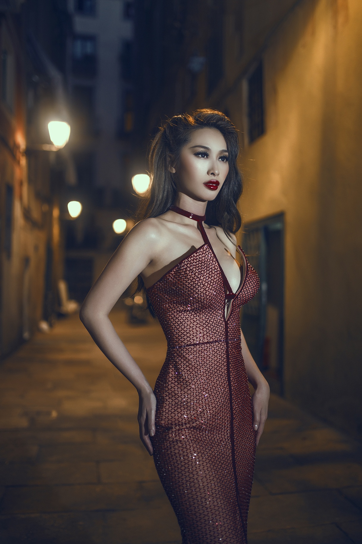 Nổi bật giữa con phố cổ kính tại Tây Ban Nha là hình ảnh sang trọng, sexy của nữ người mẫu đến từ Việt Nam.
