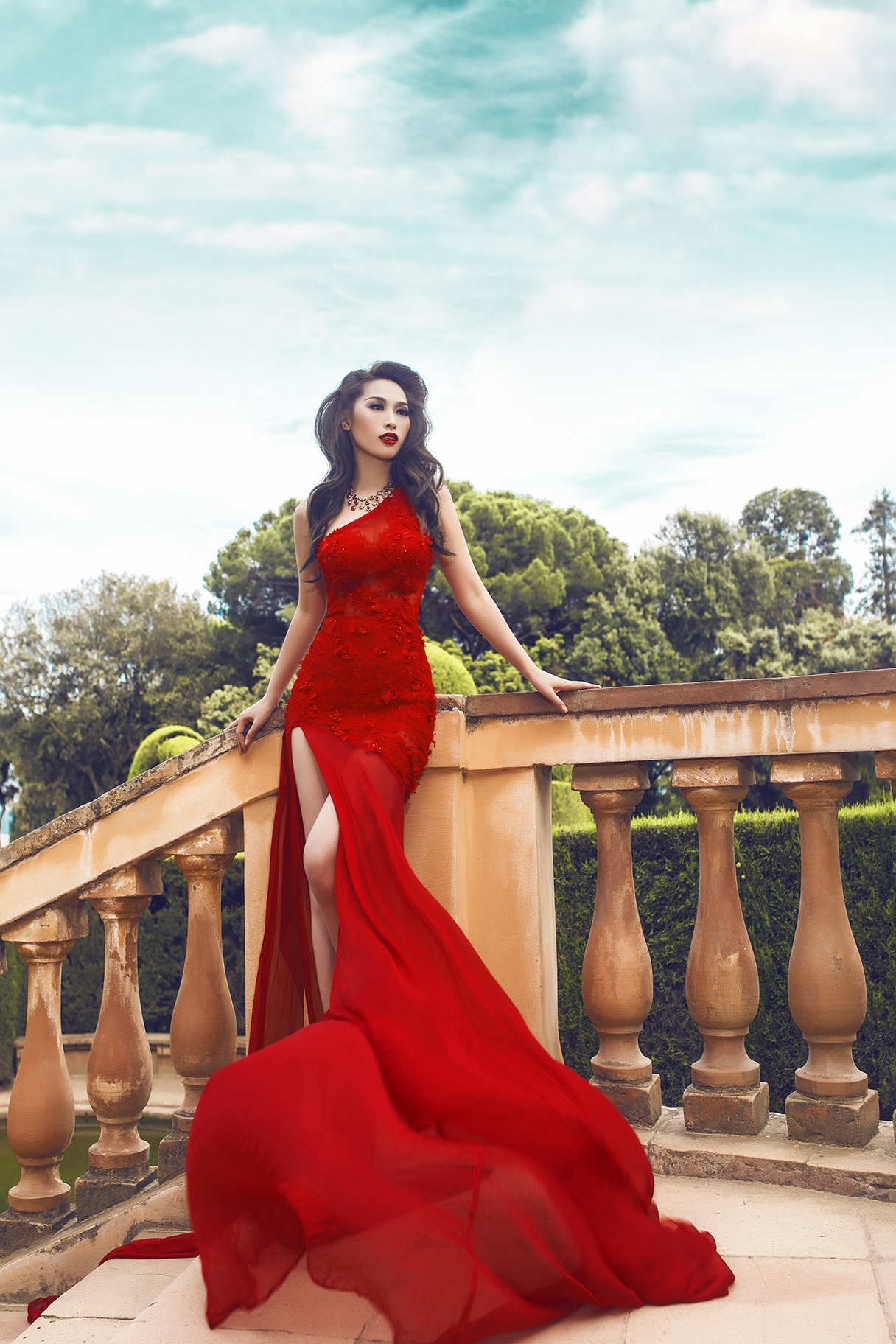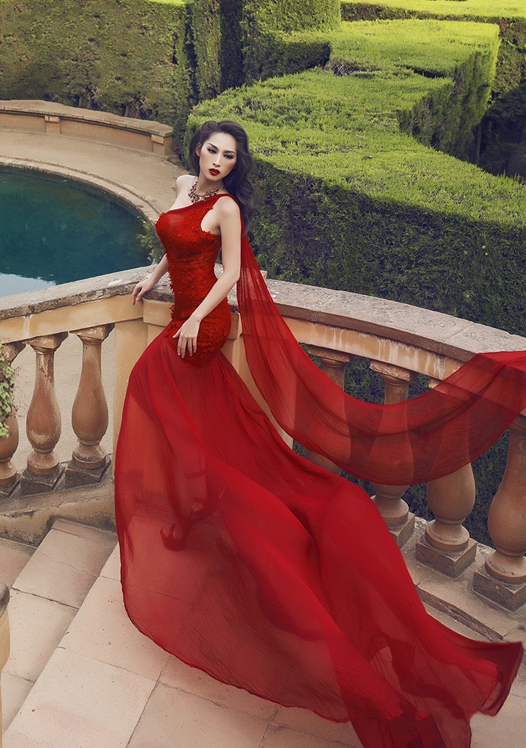 | Với chủ đề dạ hội cuối năm, chân dài làng mốt chọn mẫu đầm dự tiệc gam đỏ của NTK Minh Tú để thể hiện những khung ảnh lãng mạn, tại bối cảnh đẹp nhất nhì thế giới. |