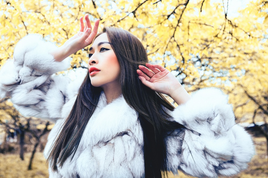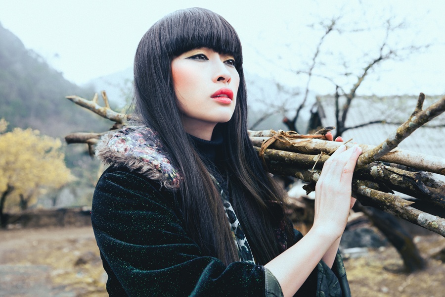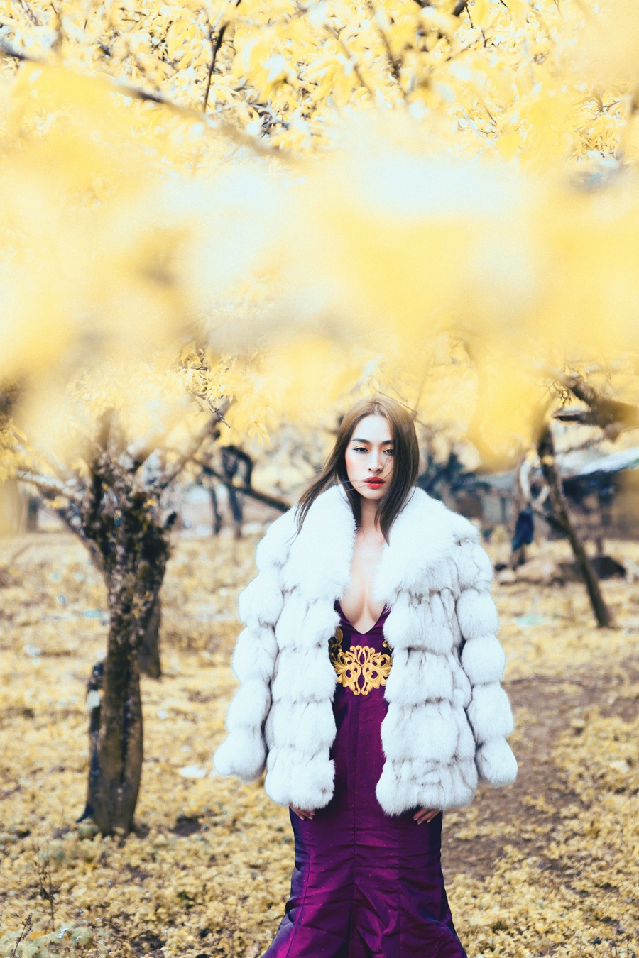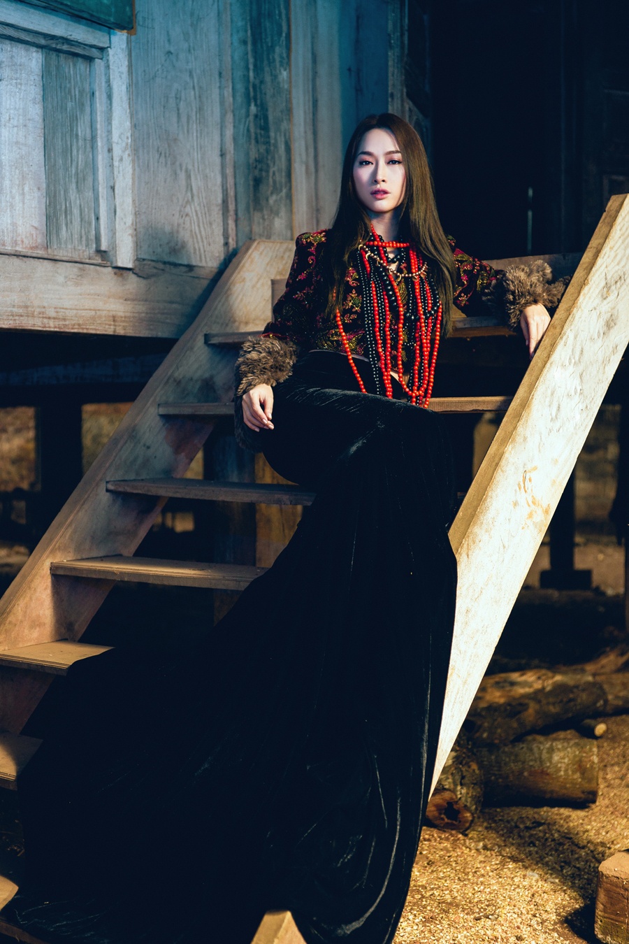 | Trong khung cảnh mơ màng của ngôi làng hẻo lánh ở Mộc Châu, chân dài nổi bật với vẻ kiêu sa, quyến rũ. Trang phục mùa đông gam màu tối kín đáo nhưng vẫn làm bật lên vẻ hấp dẫn của Quỳnh Thy. Khuôn mặt xinh đẹp, sắc sảo là điểm nhấn cho những khung ảnh ''high fashion''. |