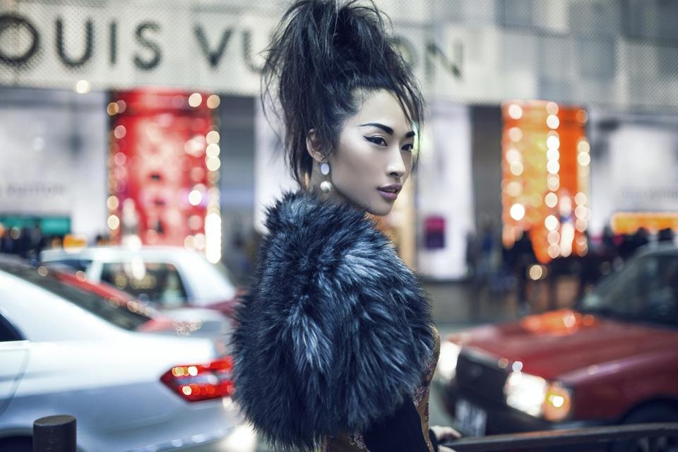| Bối cảnh thực hiện ngay tại những con phố nổi tiếng tại Hong Kong. Vẻ đẹp của gương mặt đậm chất Á Đông giúp cô thể hiện thành công ý tưởng bộ ảnh. |