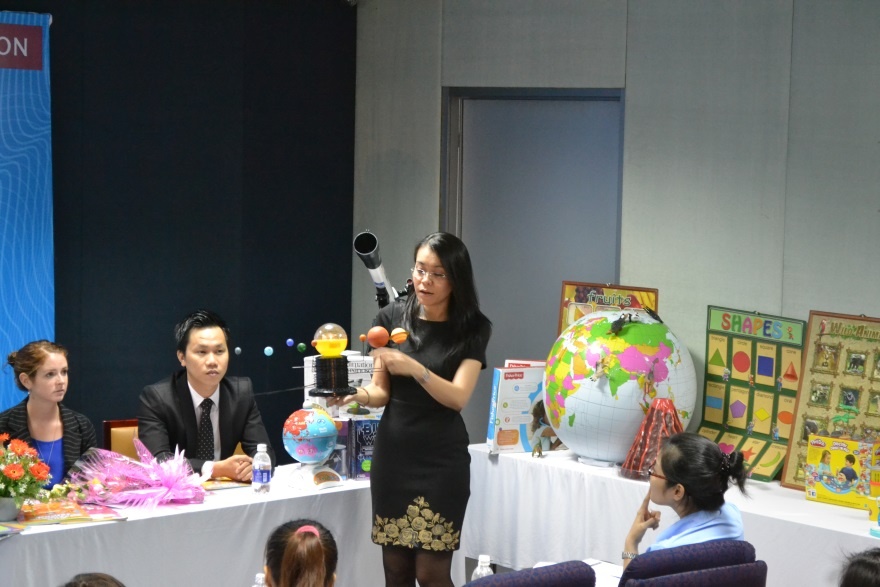 | Đại diện AMA giới thiệu các giáo cụ trực quan. |