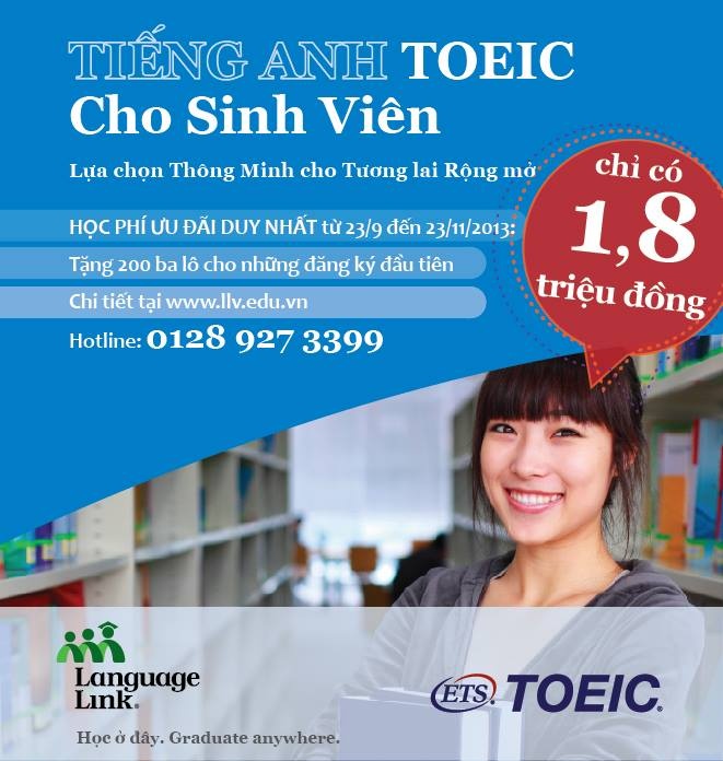 Nhân dịp ra mắt khóa học đặc biệt này, Language Link dành ưu đãi đặc biệt cho các bạn sinh viên, tặng 400.000 đồng học phí khi đăng ký chương trình từ 23/9 đến 23/11/2013. Như vậy, các bạn chỉ phải chi trả 1.800.000 học phí cho một khóa học 45 giờ tại Language Link!
