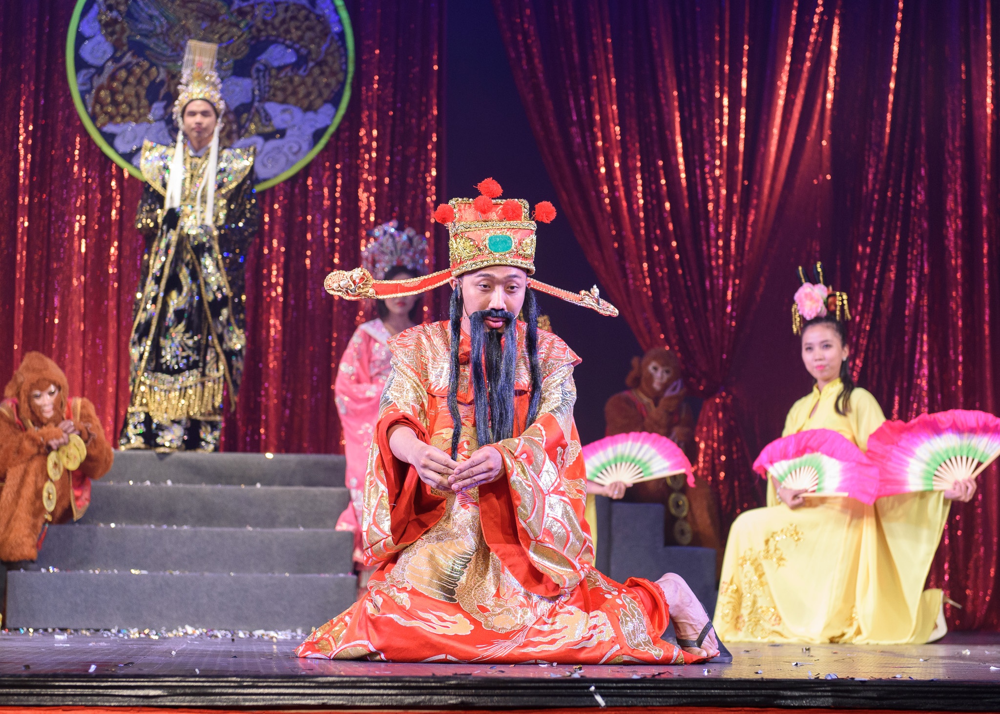 Trong vai ông thần Tài, Trấn Thành làm khán giả cười nghiêng ngả bởi sự duyên dáng của anh. Các nghệ sĩ gạo cội của sân khấu cũng kết hợp ăn ý tạo tiếng cười cho người xem. |