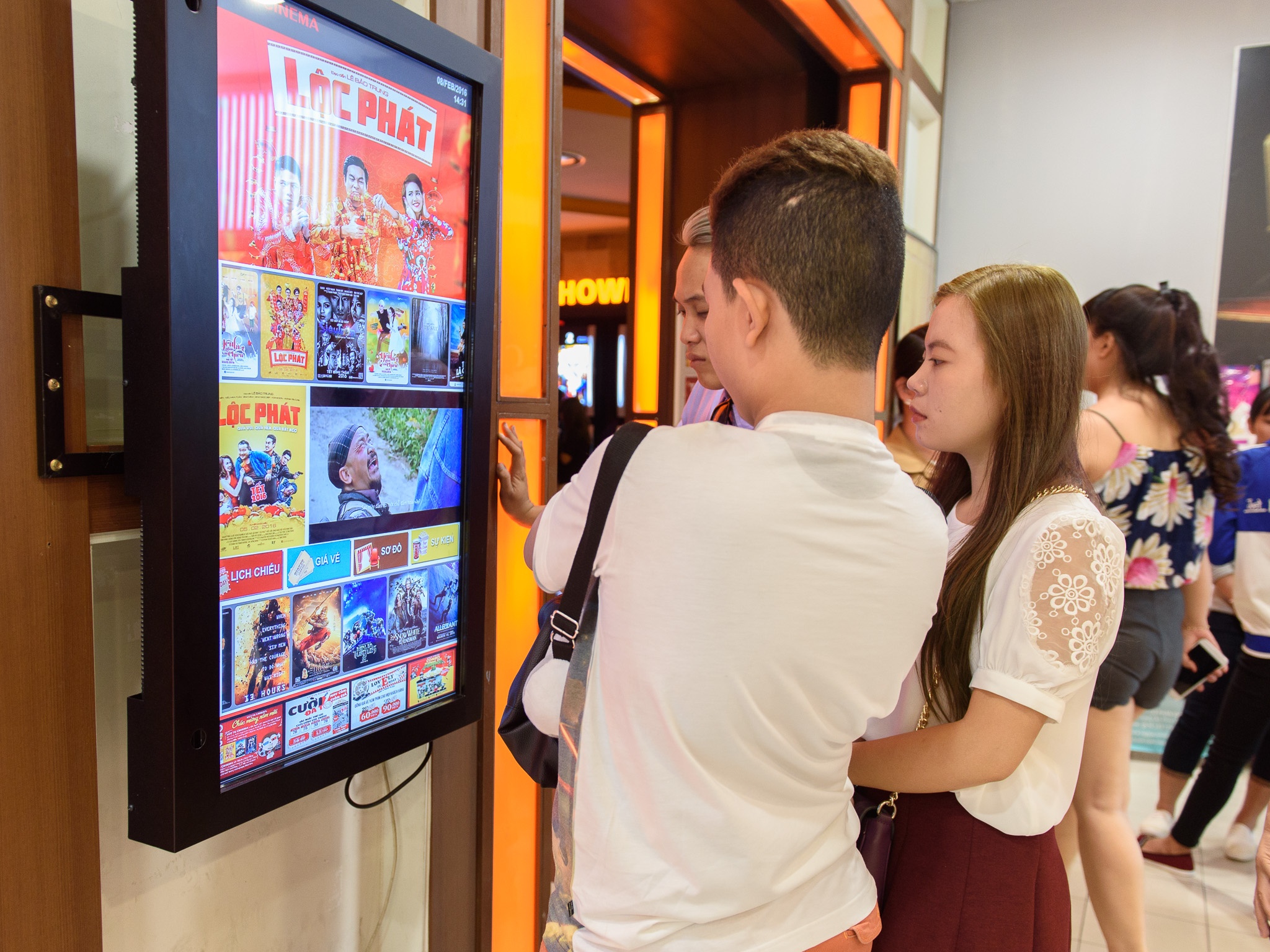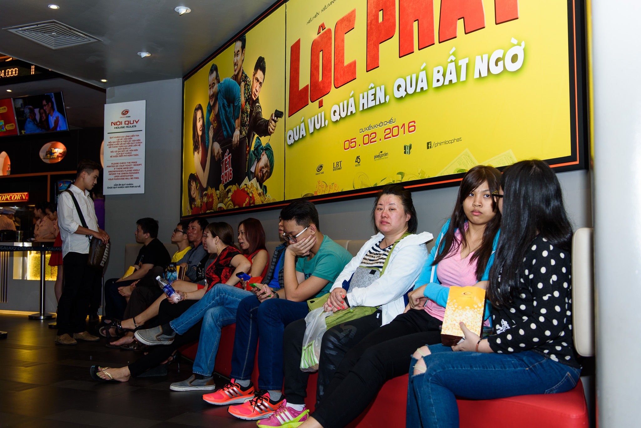 Buổi sáng rạp chiếu phim vẫn còn yên ắng cho đến trưa và chiều, không khí bắt đầu sôi nổi khi khán giả dần xuất hiện. Trong ngày này, cũng khá nhiều gia đình đưa nhau đi xem phim. Năm nay phim Việt không nhiều, lại thiếu những tác phẩm hứa hẹn oanh tạc phòng vé. |