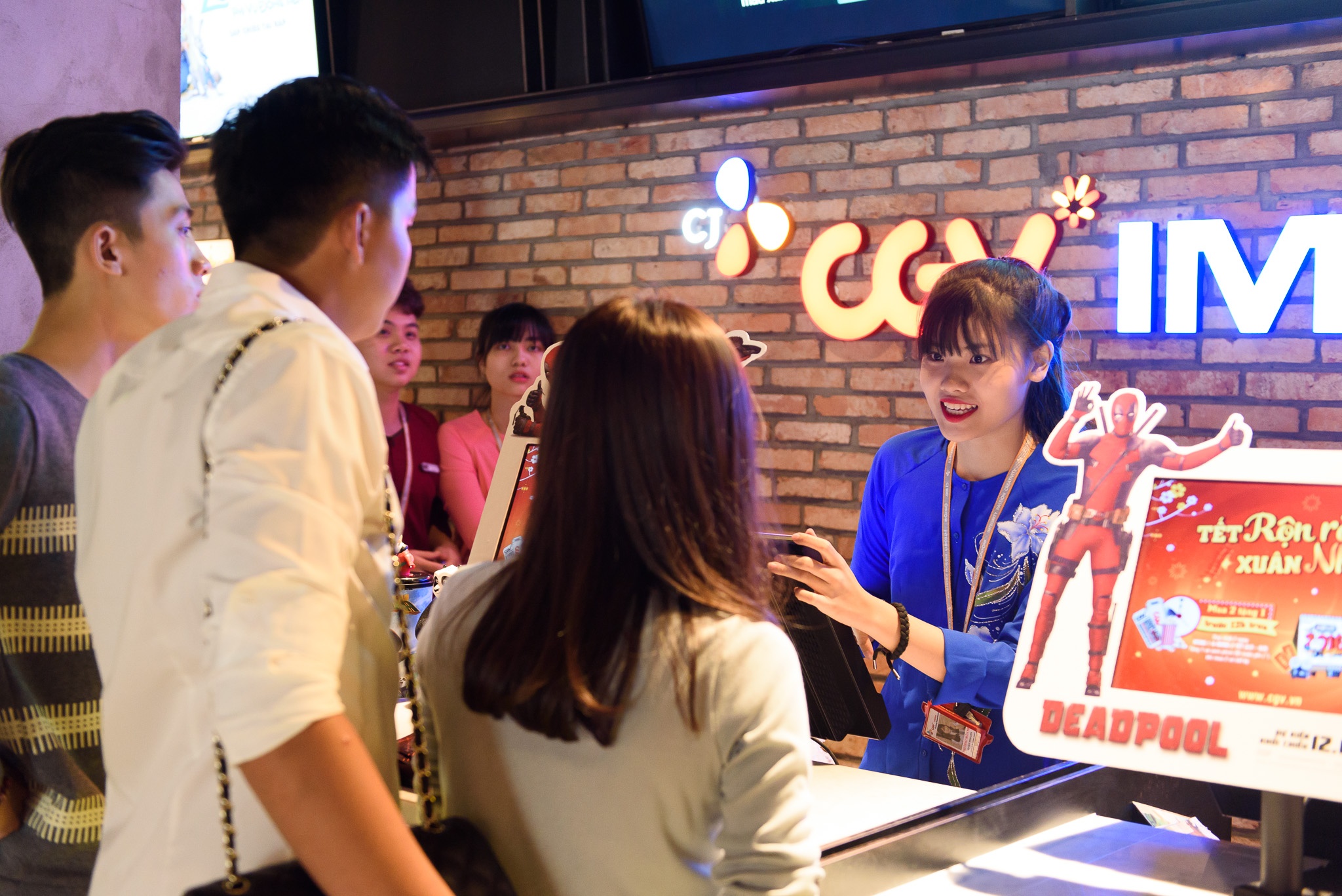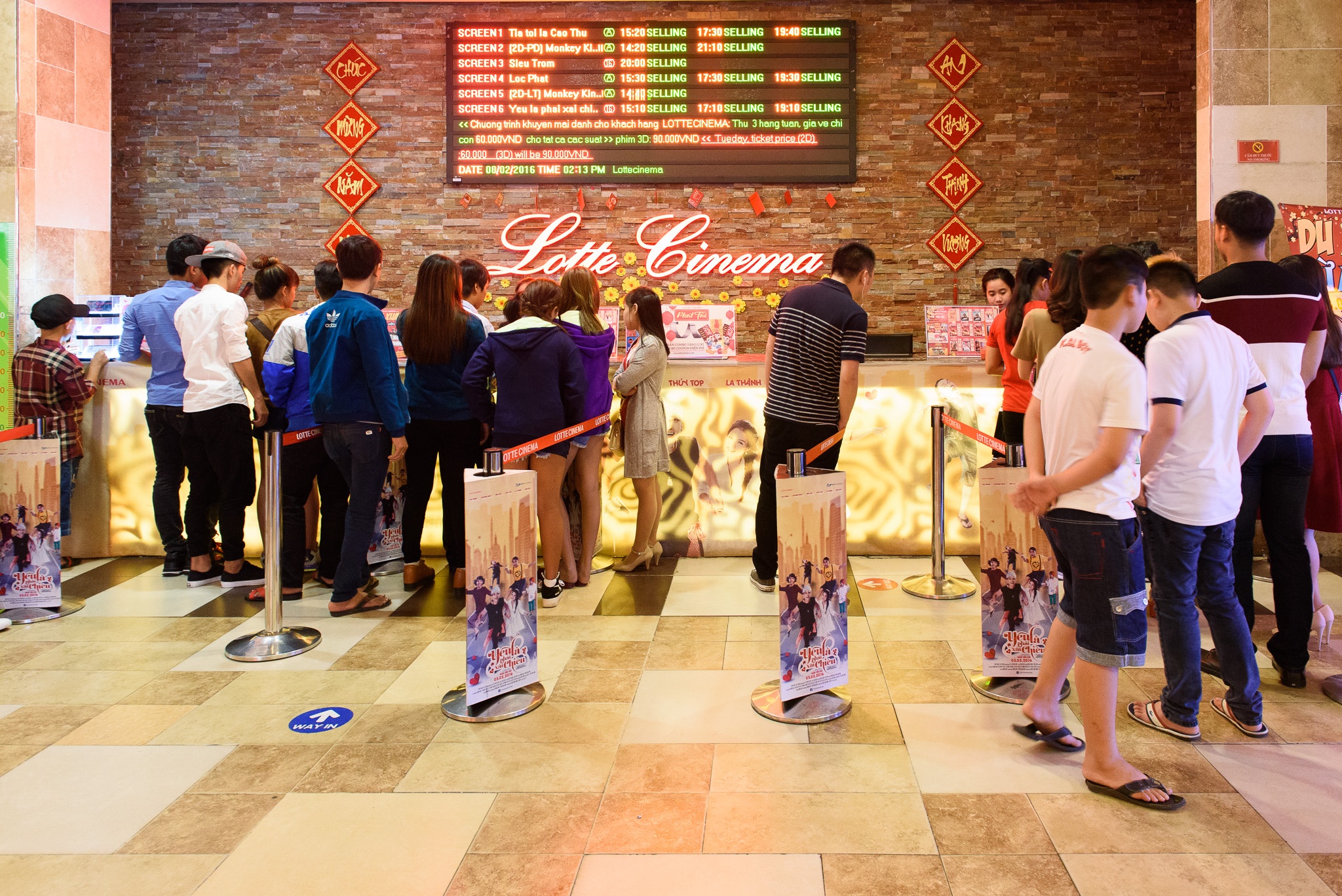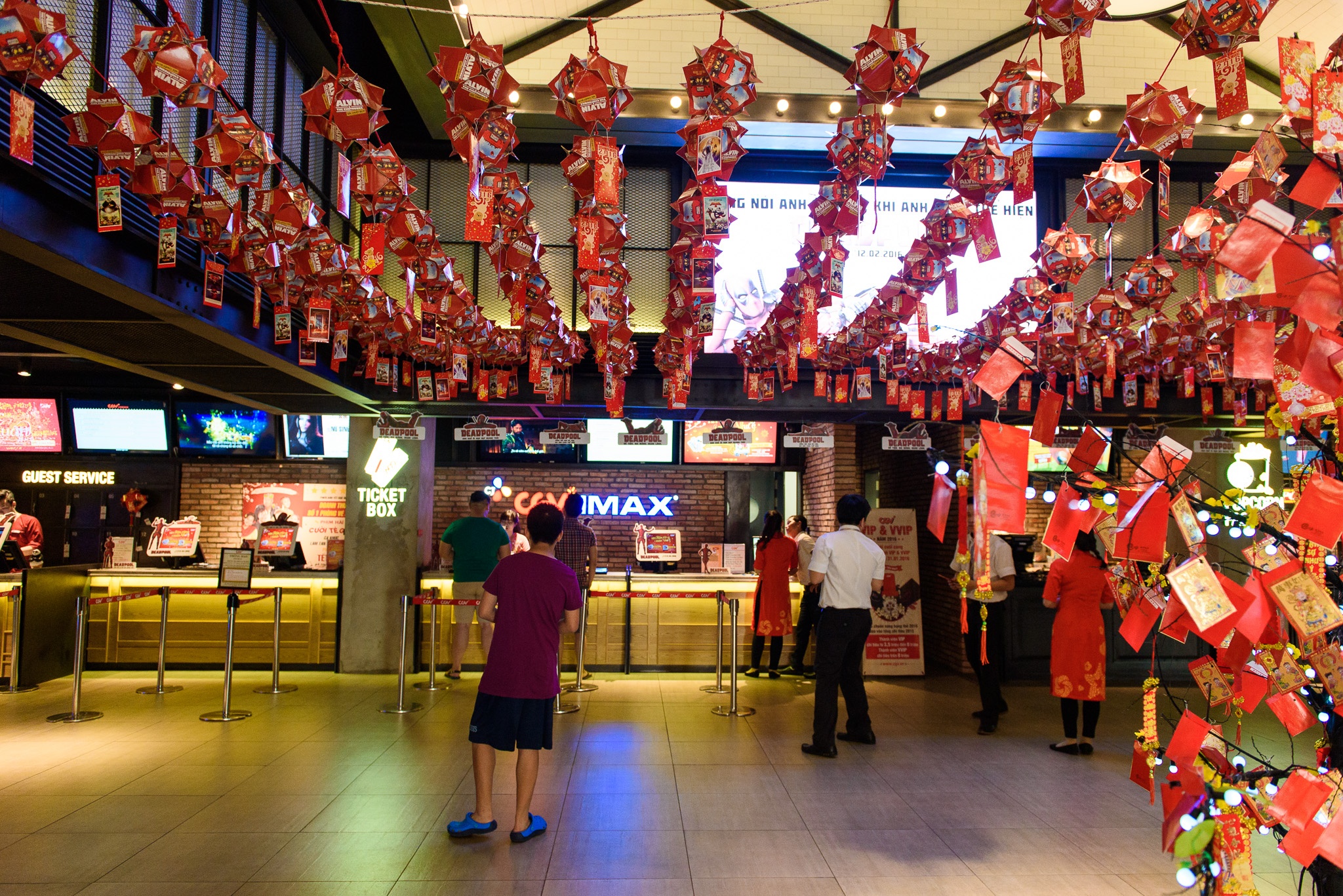 Tại rạp CGV, không khí xuân tràn về qua cách bày trí bắt mắt. Vào buổi sáng, rạp phim khá vắng người. |