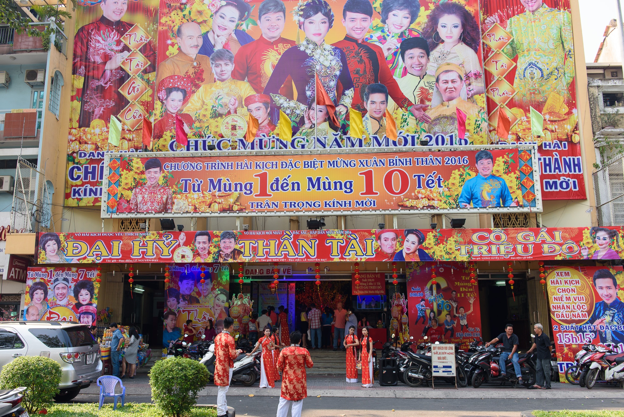 Trong khi đó, tình hình của sân khấu kịch kém sôi động hơn phim. Nhiều sân khấu khai trương vào ngày 1 Tết nhưng không phải lúc nào cũng hút khách. Tại rạp Sen Việt, khán giả tấp nập hơn nhờ vở Thần tài với sự tham gia của NSND Ngọc Giàu, Hồng Nga, Chí Tài, Trấn Thành, Lê Giang và "cô giáo Khánh". |