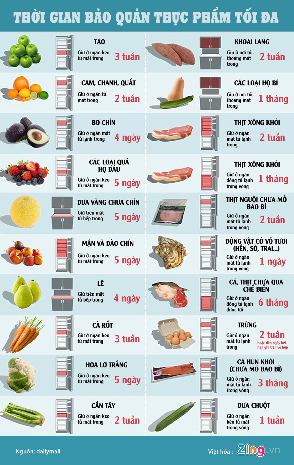 Trữ quả và rau khô trong các túi nilong đục lỗ hay các túi nhựa hở để duy trì môi trường không bị ẩm nhưng vẫn cho phép không khí lưu thông. Rửa rau, quả rồi để ráo hẳn nước trước khi cất vào tủ lạnh vì sự ẩm ướt có thể làm chúng dễ mốc và thối nhanh hơn.