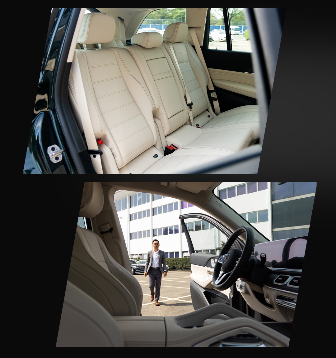 Bên cạnh nút bấm nâng hạ gầm thông qua hệ thống treo khí nén AirMatic để hỗ trợ việc chất dỡ đồ đạc lên xe thuận tiện hơn, 2 hàng ghế sau có thể gập phẳng hoàn toàn bằng điện, giúp mở rộng khoang hành lý lên 2.400 lít, đủ sức đáp ứng cho những chuyến dã ngoại nhiều ngày.