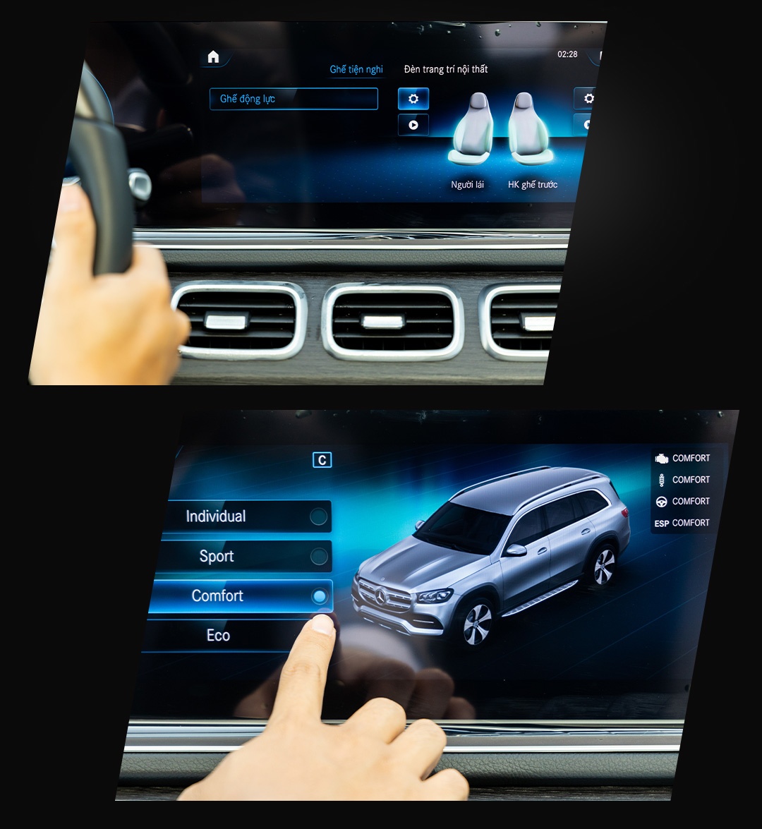 Hệ thống treo khí nén với giảm xóc thích ứng cũng là trang bị tiêu chuẩn trên GLS 450. Các cảm biến và hàng loạt công nghệ phức tạp cho phép các đặc tính giảm xóc thay đổi tùy thuộc vào điều kiện đường sá. Và cơ bản, điều này giúp chiếc xe luôn trong trạng thái cân bằng và chắc chắn bất kể địa hình.