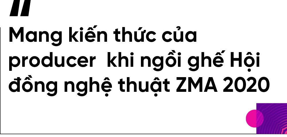 - Khi tham gia ZMA với vai trò Hội đồng nghệ thuật, tôi không áp đặt quá nhiều kiến thức về rap/hip hop để làm ảnh hưởng đến quyết định. Thay vào đó, tôi vận dụng tư duy của một nhà sản xuất âm nhạc. Và như đã chia sẻ ở trên, tôi là người nghe nhiều dòng nhạc khác nhau, cũng như thường xuyên thưởng thức các sản phẩm âm nhạc mới trong nước và quốc tế. Mỗi ngày, tôi phải cập nhật và cởi mở với những xu hướng mới trên thị trường để không bị tụt hậu.
