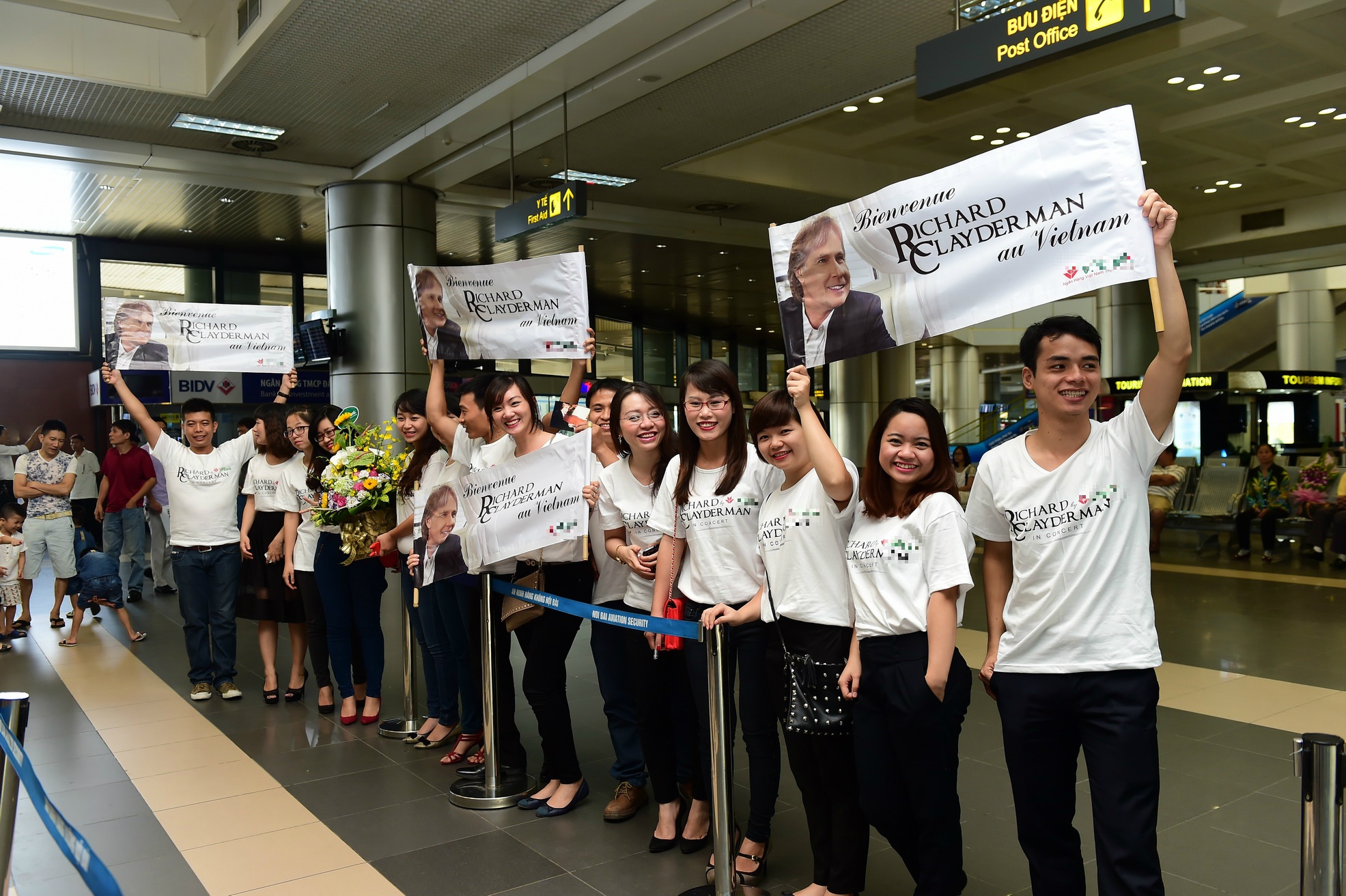 Người hâm mộ nghệ sĩ dương cầm nổi tiếng có mặt tại sân bay Nội Bài, Hà Nội từ rạng sáng 22/8 để chào đón ông.
