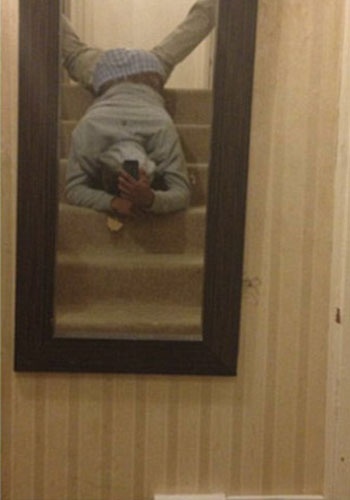 | Hàng loạt những bức ảnh nằm nghiêng ngả dưới chân cầu thang được chủ nhân tung lên, xem như một trò giải trí vô hại. |