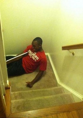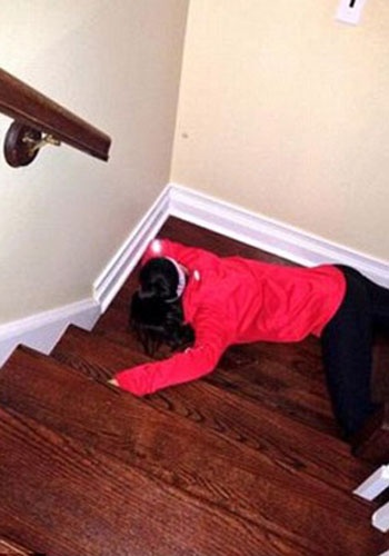 | Thậm chí có những người, để tăng tính xác thực của bức ảnh còn tung cả ảnh hay clip của quá trình trượt xuống từ cầu thang. |