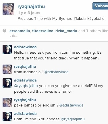 Tin đồn này đang gây xôn xao trên các forum Kpop. Người có nickname Ryzqhajathu trên Instagram đã khẳng định câu chuyện có thật khi fan khác vào hỏi. Người này cũng chia sẻ câu chuyện đáng tiếc về Tesa ở trang cá nhân của Taeyeon. Ryzqhajathu viết rằng “bạn ấy rất yêu cậu ấy (Baekhyun)... nhưng hôm nay bạn ấy đã chết sau khi biết tin cô và Baekhyun hẹn hò”.