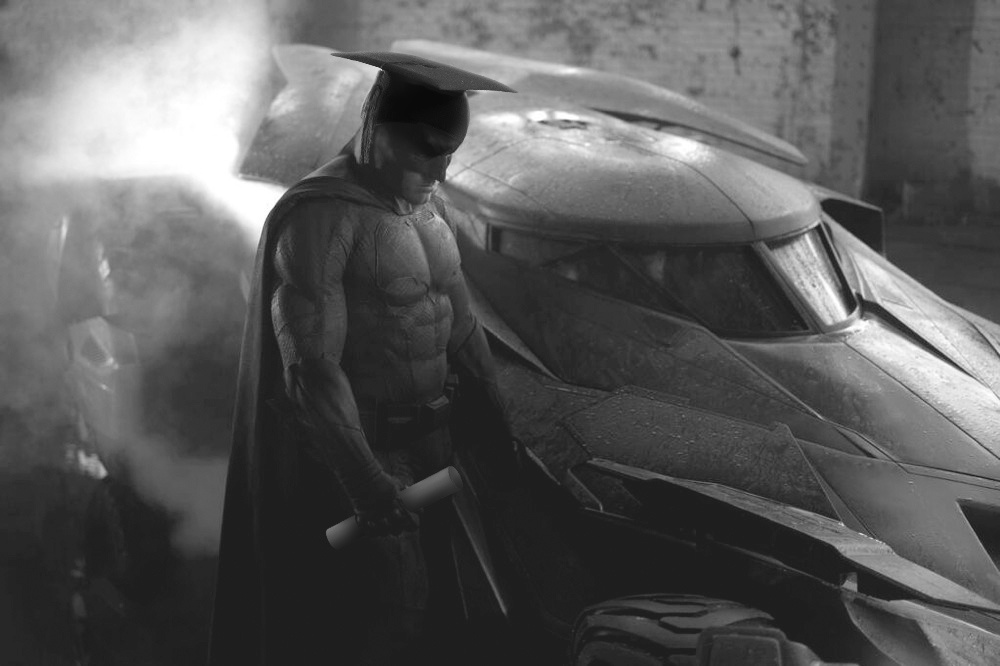 | Batman buồn vì không có cha mẹ đến dự lễ tốt nghiệp. |