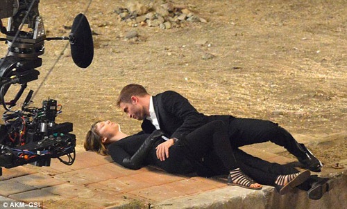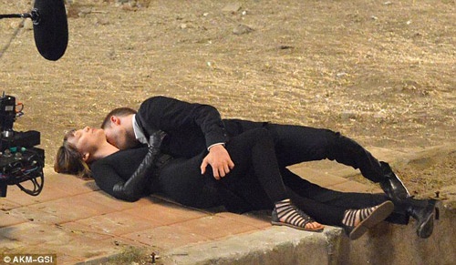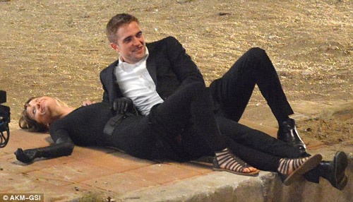 Trong bộ vest sang trọng, Robert Pattinson và Mia quấn quýt với nhau ngay trên nền đất. Nam diễn viên 27 tuổi đã hoàn thành cảnh quay này trong 4 đúp.