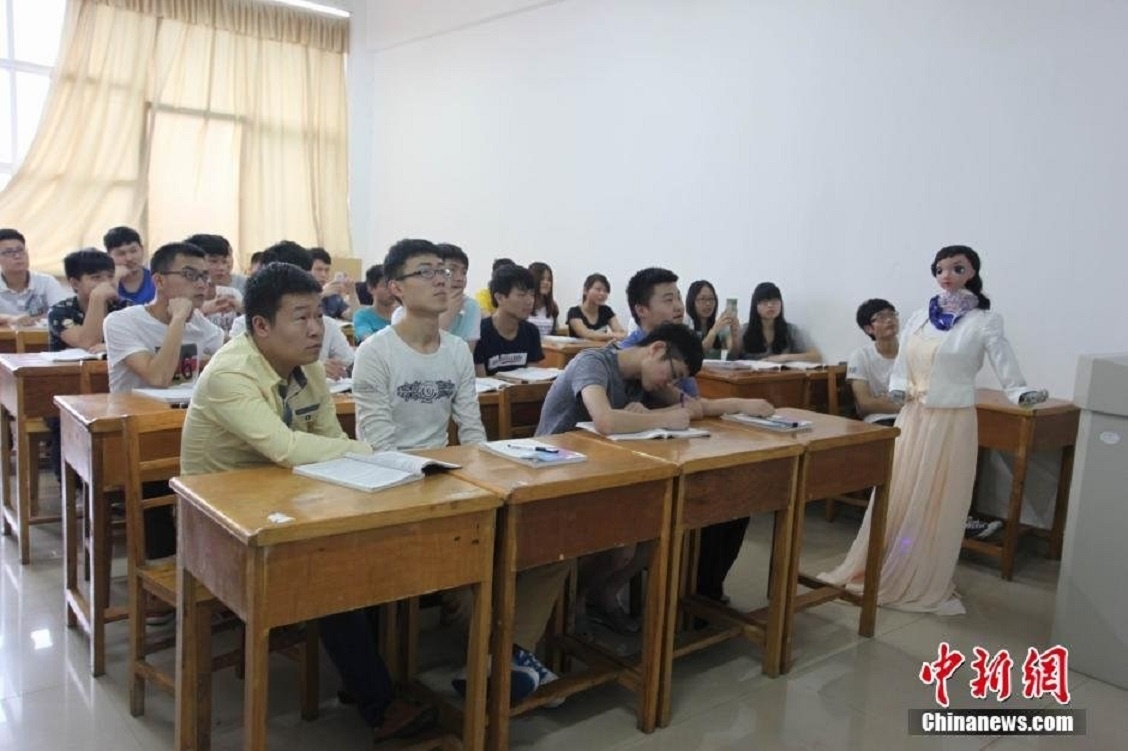 | Ngày 3/6/2015, "cô giáo robot xinh đẹp" tên Tiểu Mỹ bắt đầu giảng dạy tại Đại học Cửu Giang, tỉnh Giang Tây, Trung Quốc. Đây là lần đầu tiên trường học ở tỉnh này sử dụng robot làm giảng viên. Ảnh: Chinanews. |