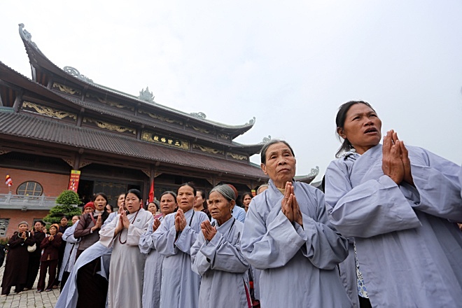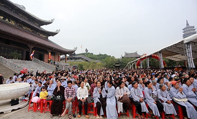 Hàng nghìn người dân có mặt tại chùa Bái Đính để tham dự lễ cầu siêu, nhiều người trong số họ có người thân bị tử nạn khi tham gia giao thông.