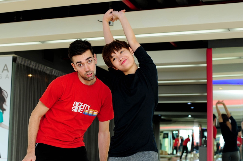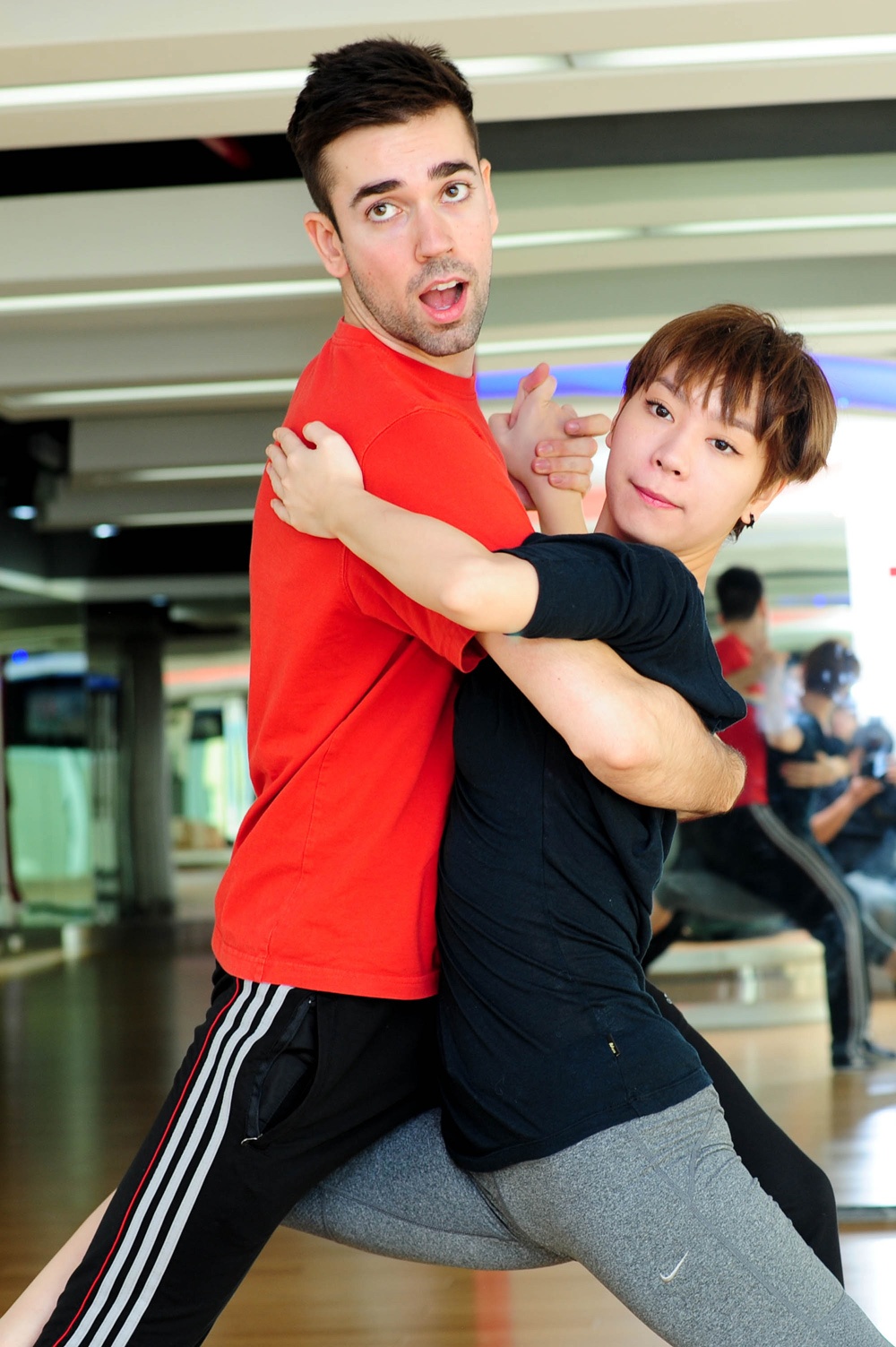 Trà My tập luyện cùng bạn nhảy của vợ Phan Thanh Bình. Cô cho biết, dù mới làm việc nhưng nam vũ công chỉ dạy cô nhiệt tình và rất vui tính.