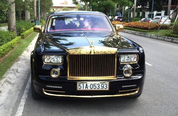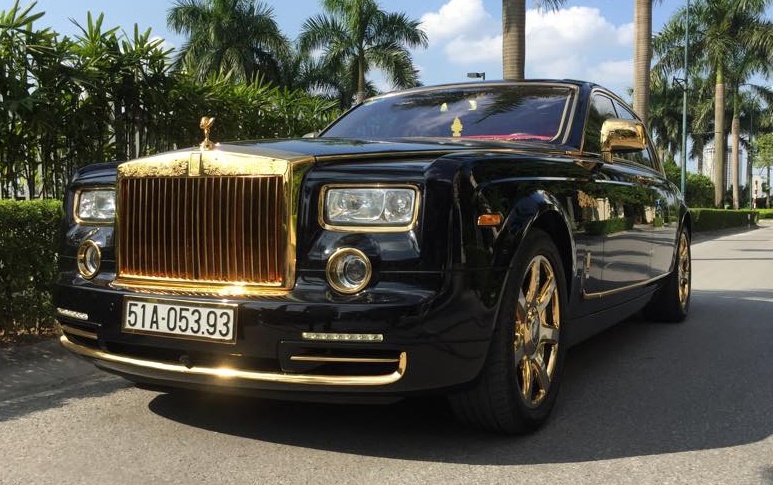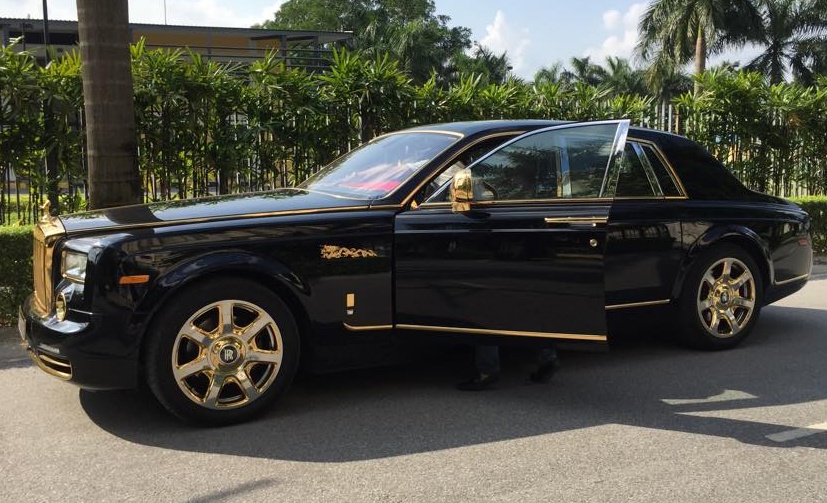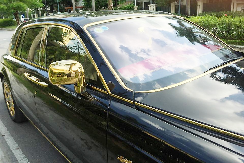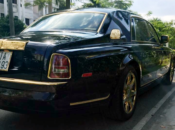 | Chiếc Rolls-Royce Phantom mang biển số Sài Gòn nhưng hiện thuộc sở hữu của một đại gia kinh doanh bất động sản ở Hà Nội. Sau lần đầu xuất hiện trên đường phố thủ đô với một số chi tiết mạ vàng hồi tháng 4, chiếc xe vừa được độ lại với việc gắn thêm hình rồng nổi và mạ vàng thêm nhiều vị trị ở nội, ngoại thất. |