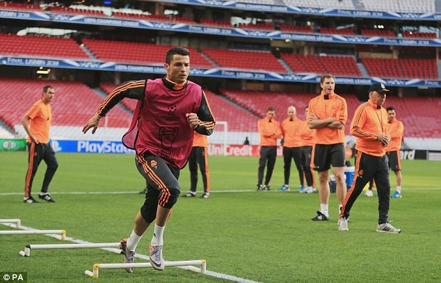 | Cristiano Ronaldo đã xóa tan những hoài nghi về thể lực mà người hâm mộ đang nhắm vào anh bằng việc luyện tập tích cực trong buổi làm quen với mặt sân Da Luz của Benfica vào chiều qua. |