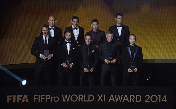 | Đội hình tiêu biểu của FIFA trong năm 2014: Neuer; Lahm, Ramos, David Luiz, Thiago Silva; Di Maria, Iniesta, Kroos; Messi, Ronaldo, Robben. |