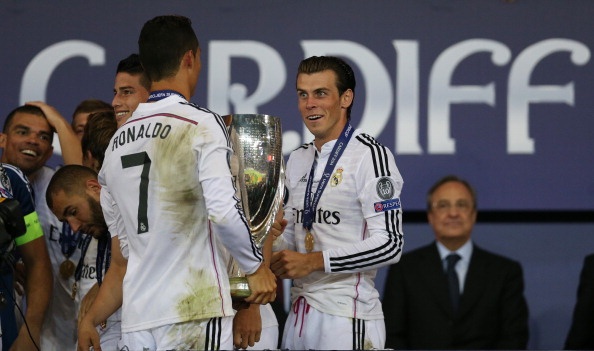 | Ronaldo và Bale trong phút đăng quang Siêu cúp châu Âu của Real. Ảnh: Getty Images |