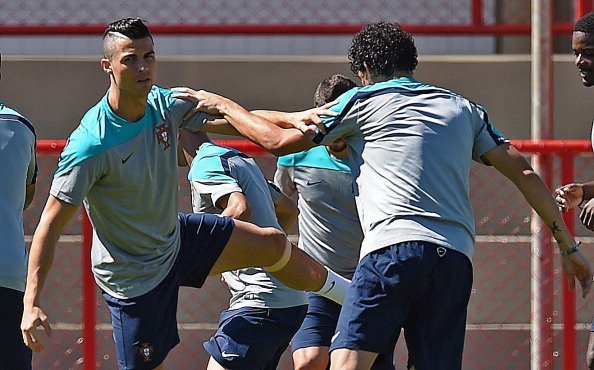 | Ở buổi tập ngay sau trận hòa 2-2 của Bồ Đào Nha trước Mỹ, Ronaldo vẫn ra sân với kiểu tóc zic-zac. |