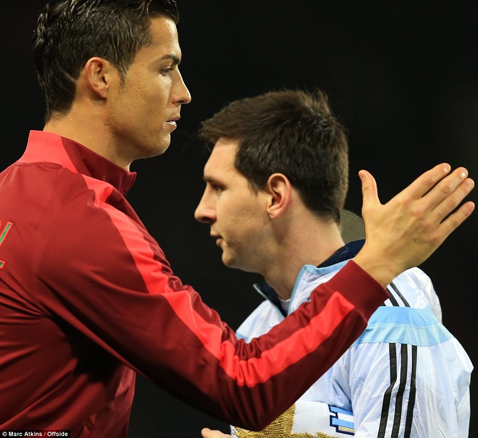 | Thậm chí trong khi trận đấu đang diễn ra, hai ngôi sao sáng nhất của làng bóng đá thế giới còn trao đổi khá thân thiết. |