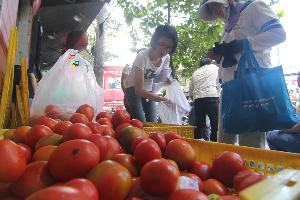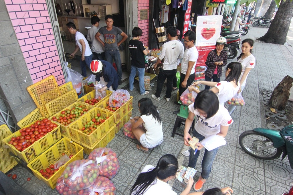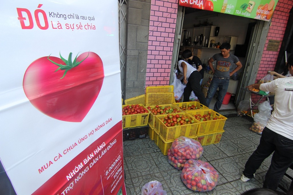 Để giúp người nông dân trồng cà chua Lâm Đồng vượt qua khó khăn, nhóm bạn trẻ Sài Gòn đã thu mua và tổ chức bán không lợi nhuận. Mục tiêu của nhóm là bán được 12 tấn cà chua.