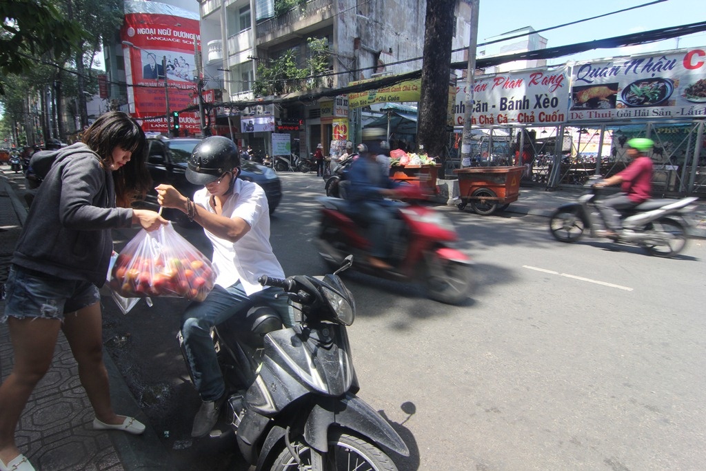 | Một tháng nay, vào ngày chủ nhật, tại hai địa chỉ 59, Trần Quang Khải (Q.1) và 79, Bàn Cờ (Q.3) tấp nập cảnh mua bán cà chua. Những thùng cà chua được chất đầy lan ra vỉa hè, người bán là những bạn trẻ trong một CLB tình nguyện. Ảnh chụp trên đường Trần Quang Khải. |