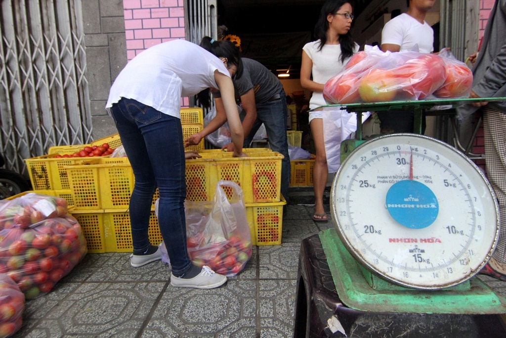 | Nhiều bạn trẻ khi biết về chương trình, cũng tìm đến mua cà chua ủng hộ. |