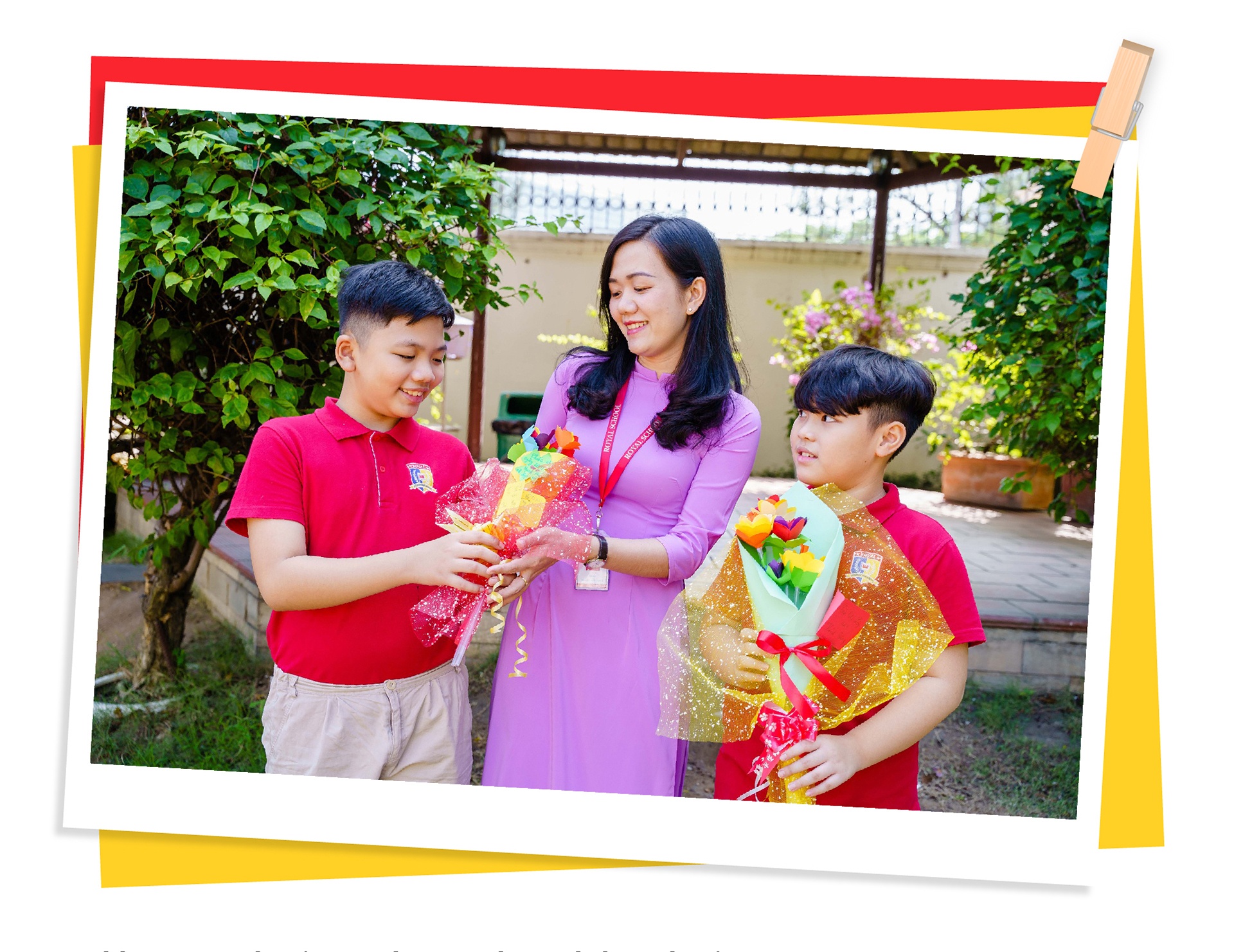 Mỗi bước con đến trường đều có mẹ và cô giáo. Mỗi bài toán khó con đều có thầy cô hỗ trợ, bạn bè giúp sức. Mỗi bữa ăn ngon đều nhờ cô chú đầu bếp tâm huyết hết mình. Con hạnh phúc khi đến trường, hạnh phúc khi được học tập, được vui chơi.