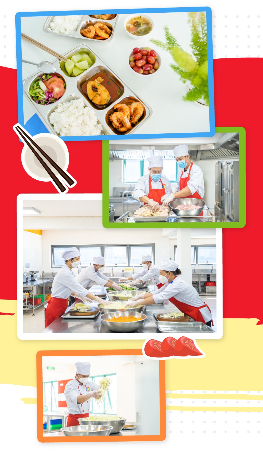 Dinh dưỡng đóng vai trò quan trọng trong việc nâng cao thể trạng, trí tuệ của học sinh. Do đó, đây là yếu tố được nhà trường đặc biệt quan tâm. Theo đó, nguồn gốc thực phẩm, khâu chế biến, bảo quản, vận chuyển đều được kiểm soát nghiêm ngặt theo quy định an toàn vệ sinh thực phẩm. Thực đơn được xây dựng hàng tuần, đa dạng các món Á - Âu, đủ nhóm chất và được thông tin đến phụ huynh thường xuyên.