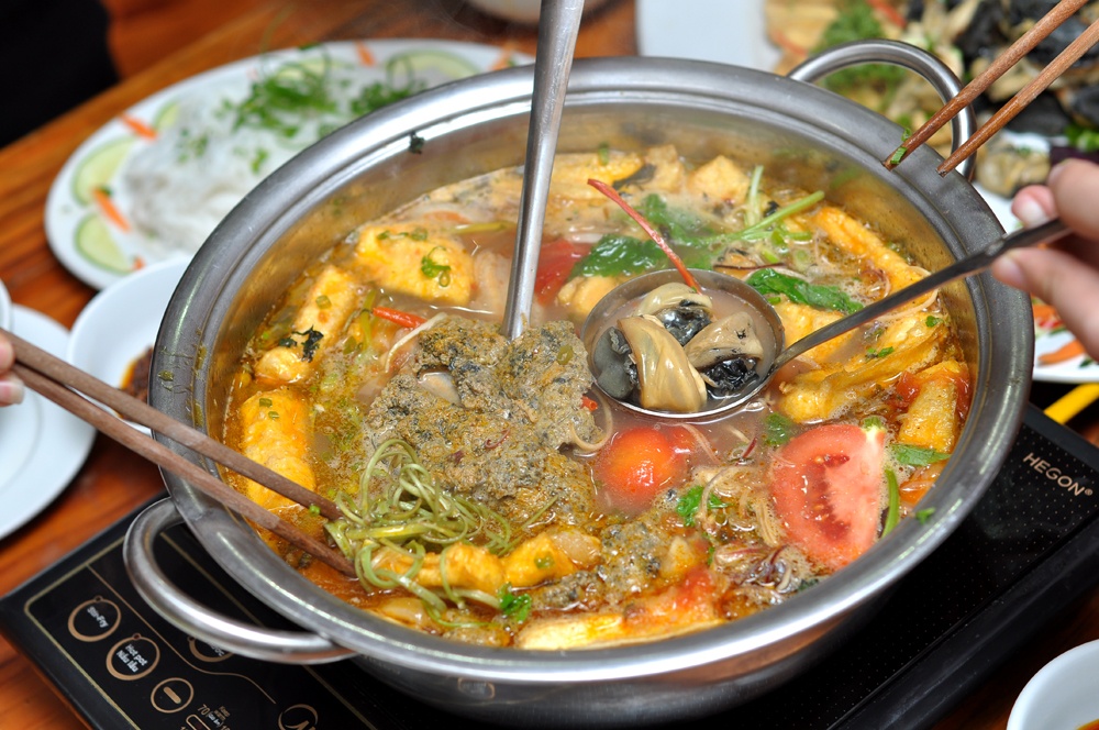 Nhìn qua, có lẽ nhiều khách thấy “đồ nhắm” thế hơi ít. Song đó chỉ là cảm giác “đói con mắt” của người háu ăn. Nhập cuộc rồi bạn sẽ thấy set lẩu riêu ốc này đủ đạm và khá thoải mái.