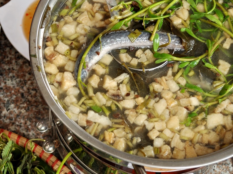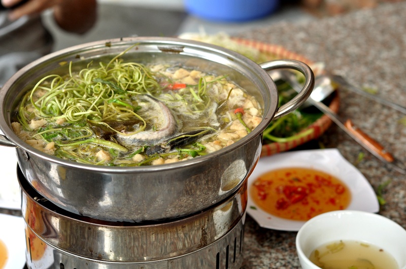 Đến đây bạn không nên bỏ qua lẩu cá kèo. Lẩu cá kèo trông khá hấp dẫn với mẹt rau to và đầy đặn cỏ đủ hoa chuối, rau đắng, giá đỗ, muống chẻ. Nồi lẩu ngoài loại lá giang đặc trưng còn được bỏ rất nhiều tóp mỡ khiến nước canh chua thơm thêm chút ngậy béo thú vị. Cá kèo vẫn đang bơi lội trong bể, khách ăn nhân viên mới vớt ra cho vào nồi để thưởng thức một cách tươi ngon nhất.