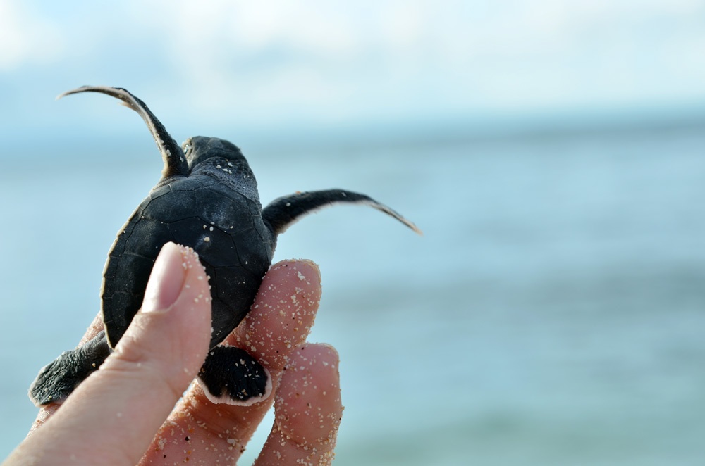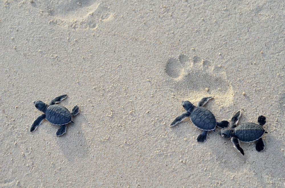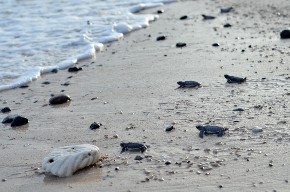 | Ngoài ra còn có bảo tồn các hệ sinh thái biển, ven biển. Trong ảnh, rùa con di chuyển về phía biển sau khi trứng nở. Ảnh: Nguyễn Hải Vân/TNV IUCN. |