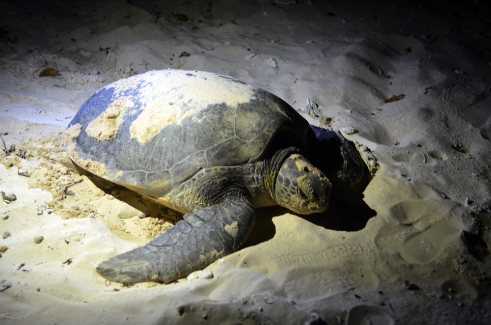 | Rùa biển thường lên cạn và đào ổ đẻ trong cát vào ban đêm. Ảnh: Nguyễn Hải Vân/TNV IUCN. |