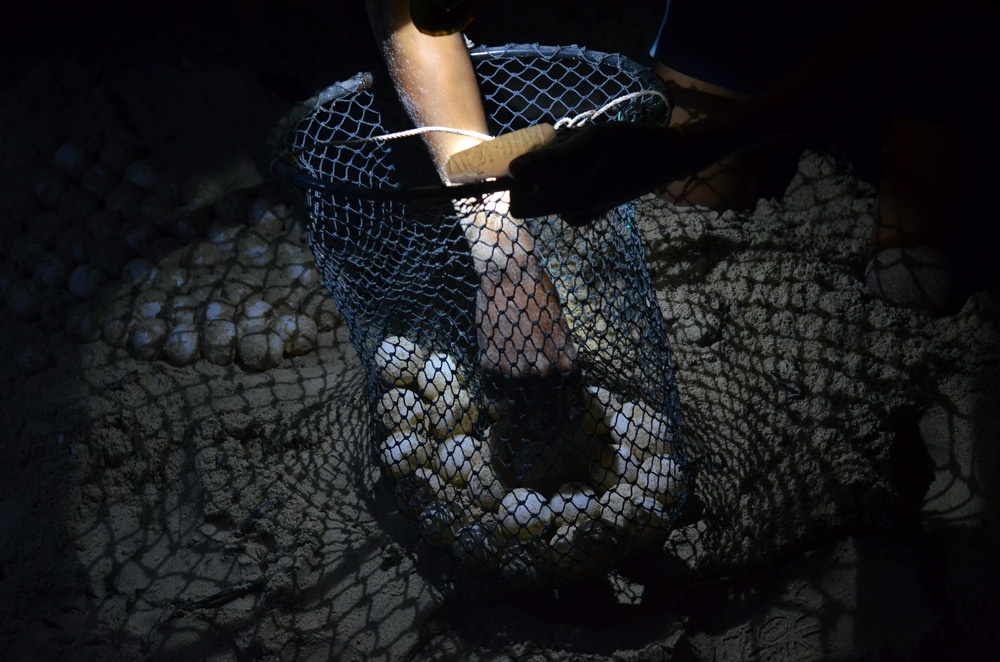| Cán bộ bảo vệ thực hiện công tác kiểm tra đánh giá sự sinh nở của rùa biển tại Côn Đảo. Ảnh: Nguyễn Hải Vân/TNV IUCN. |
