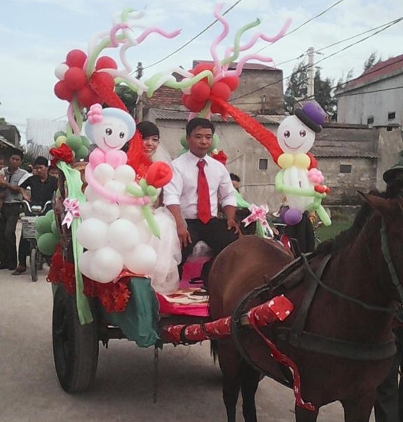 | Hình ảnh chú rể rước dâu bằng xe ngựa đang thu hút sự chú ý của cộng đồng mạng. |