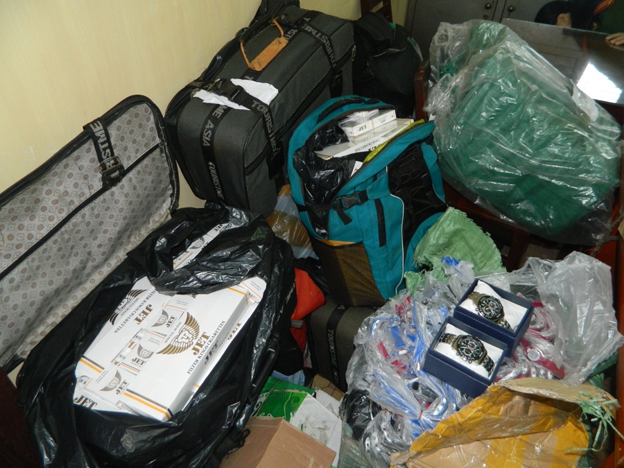 | Số hàng gồm 654 đồng hồ đeo tay, trên 3.000 gói thuốc Zet, rượu Chivas 21 không giấy tờ, nguồn gốc. |