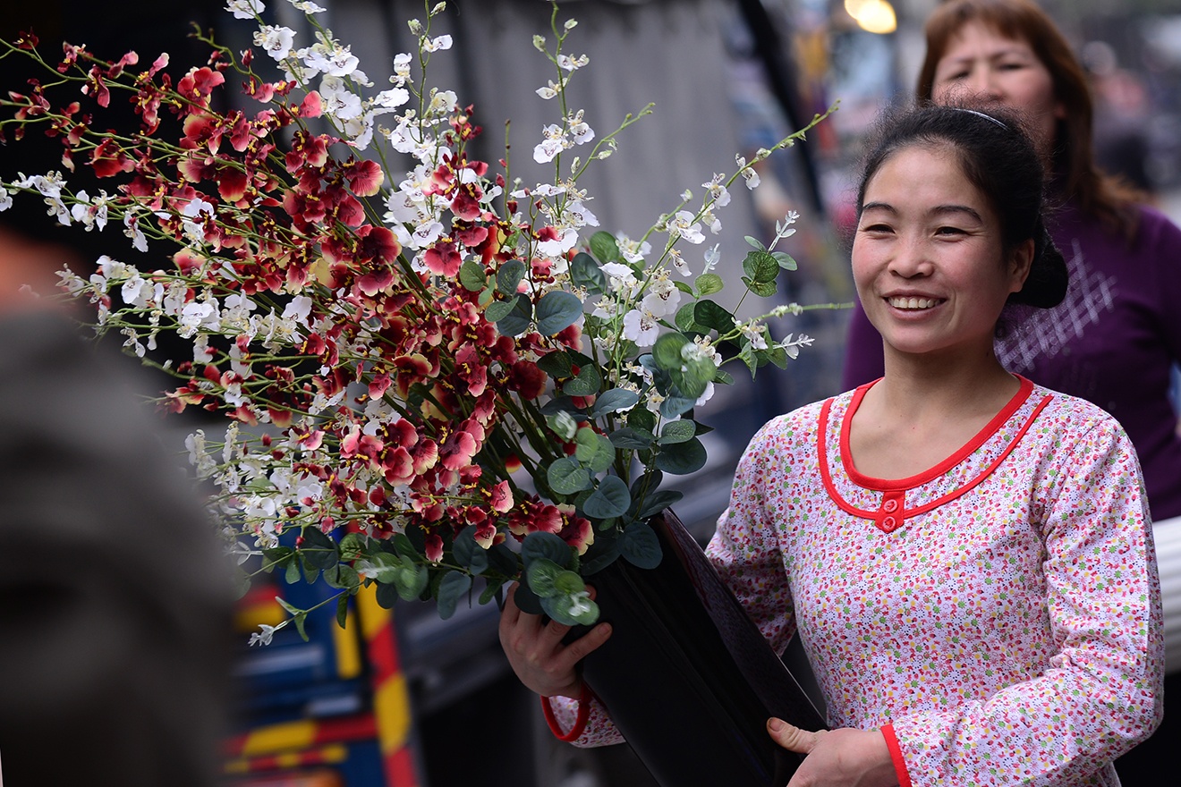 | Nụ cười rạng rỡ đón xuân về trên gương mặt những người dân sắm hoa chuẩn bị đón Tết. |