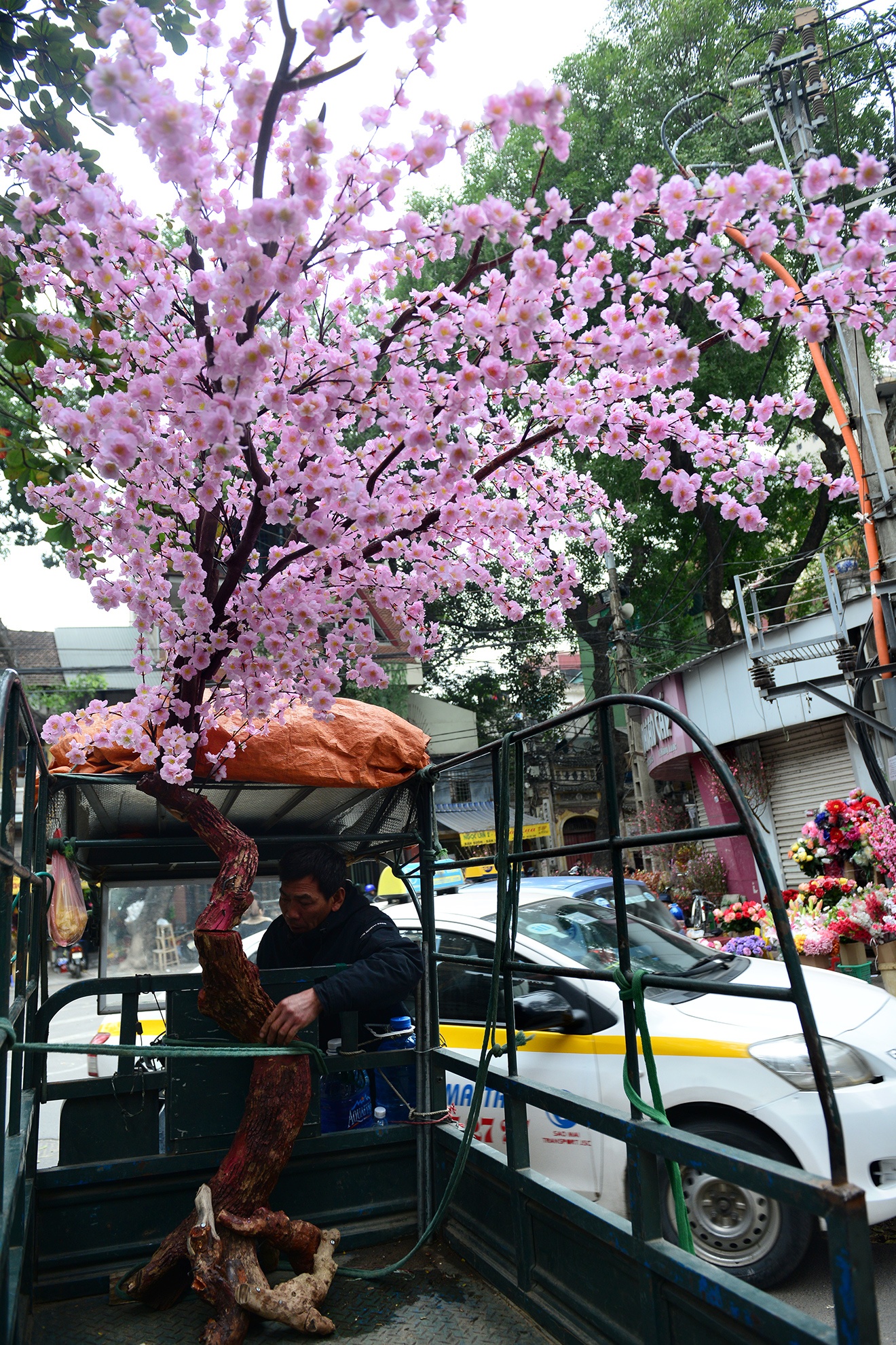 | Cây đào giả có giá lên tới hơn 5 triệu đồng được một khách hàng đặt mua tại chợ hoa Hàng Lược để chơi Tết tại nhà. |