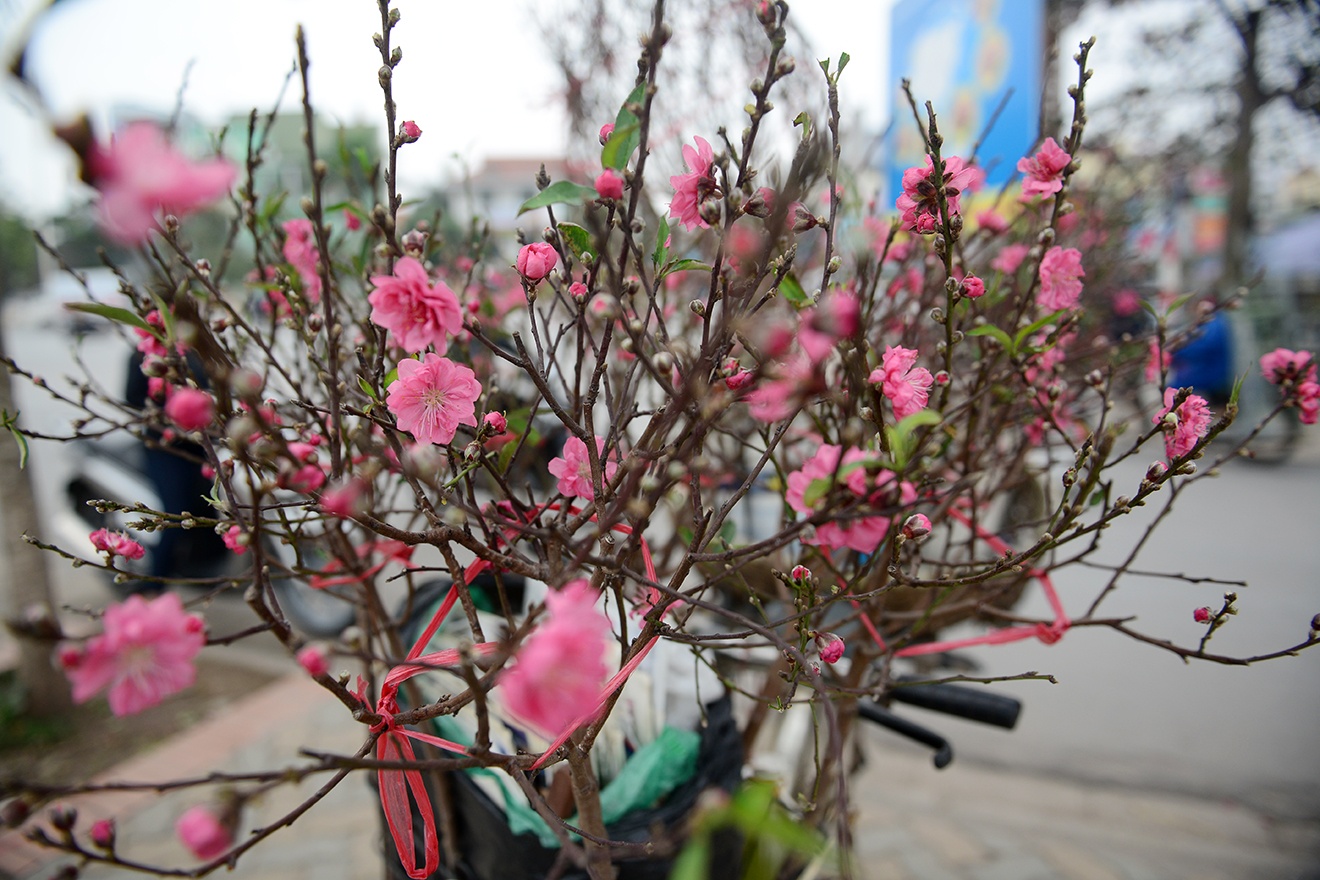 | Không chỉ đào, nhiều loại hoa xuân khác cũng theo chân những xe hoa về trên phố. |