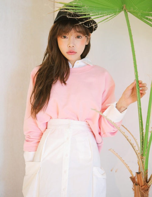 Cùng với một chiếc chân váy, bạn có thể tăng sự trẻ trung với một chiếc áo nỉ dáng thụng.