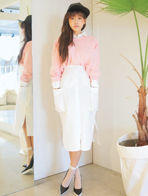 Thêm một cách mix đồ sáng tạo với áo nỉ, sơ mi và váy bút chì.