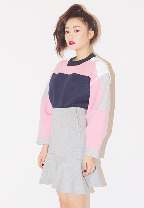 | Áo nỉ mix kèm váy xòe rất được các bạn gái ưa thích. |