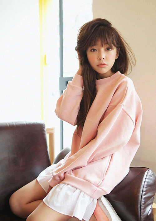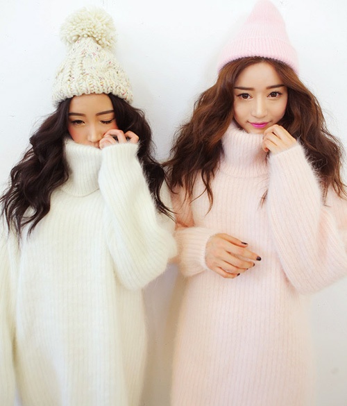 Bên cạnh áo váy len dáng bó, bạn có thể chọn váy len hồng suông nhẹ nhàng.