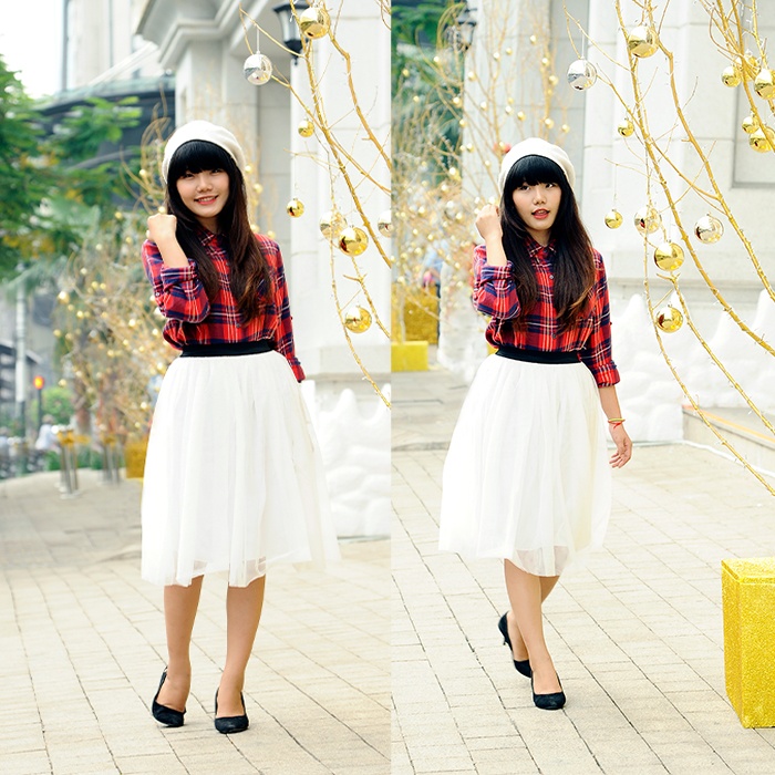 | Xu hướng caro dường như chưa hề hạ nhiệt trong con sốt thời trang trong thời gian gần đây, đặc biệt, khi kết hợp chiếc áo sơmi caro giá 330.000đ cùng chân váy voan trắng giá 320.000đ tạo nên sự duyên dáng và đáng yêu cho cô nàng thêm xinh |