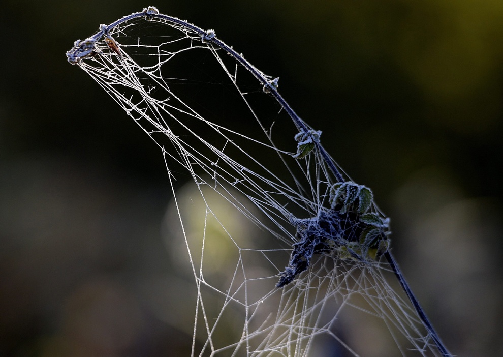 Những giọt sương li ti như những viên pha lê đọng lại trên mạng nhện ở gần Przemysl, phía đông nam Ba Lan.